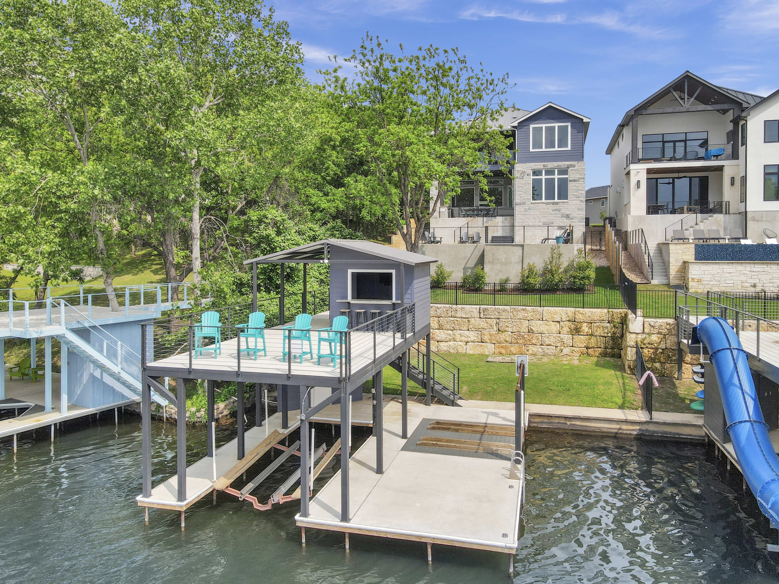Nestled in the heart of the picturesque Texas Hill Country, our luxurious vacation rental property is surrounded by stunning hills, including the iconic Packsaddle Mountain, and bordered by the majestic Llano River and Colorado River arms of the beautiful constant-level Lake LBJ. Our unrivaled location boasts miles of pristine lakefront property, offering an unmatched getaway experience. Moreover, our guests can indulge in various outdoor recreational activities, including swimming, fishing, boating, jet skiing, and more. For nature lovers, three renowned state parks - Inks Lake State Park, Longhorn Cavern State Park, and Enchanted Rock State Natural Area - are just a short drive away, offering endless opportunities for hiking, picnicking, and wildlife watching. If you're looking for a more relaxing experience, you can unwind at the famous “Slab” on the Llano River, which is one of the area’s favorite swimming holes. Alternatively, Kingsland Community Park provides public access to the lake, where you can lounge on the beach, enjoy a picnic, or simply soak up the tranquil surroundings.